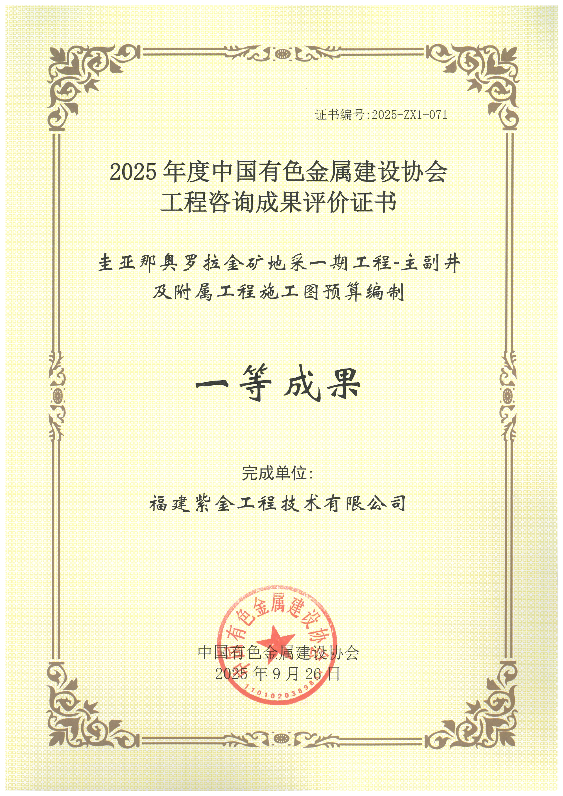 喜报丨我司四项工程咨询成果斩获2025年度有色金属建设协会一等成果奖